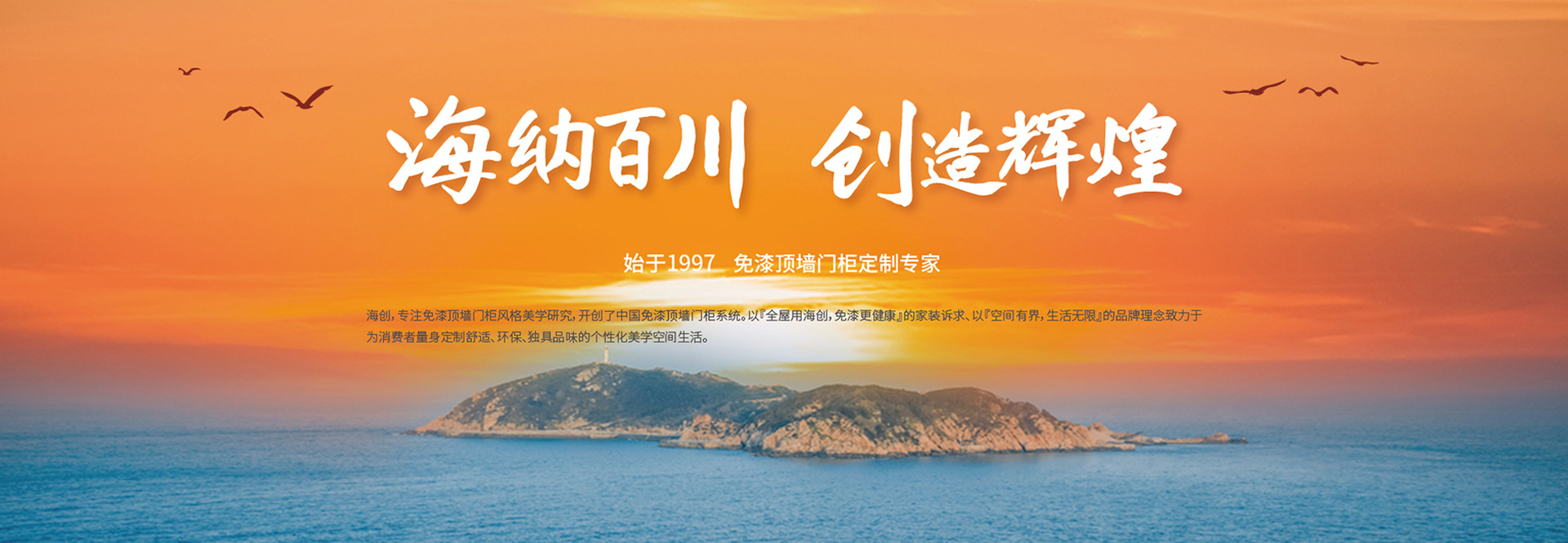 海創(chuàng),專(zhuān)注免漆頂墻門(mén)柜風(fēng)格美學(xué)研究,開(kāi)創(chuàng)了中國(guó)免漆頂墻門(mén)柜系統(tǒng)。以『全屋用海創(chuàng),免漆更健康』的家裝訴求、以『空間有界,生活無(wú)限』的品牌理念致力于為消費(fèi)者量身定制舒適、環(huán)保、獨(dú)具品味的個(gè)性化美學(xué)空間生活。