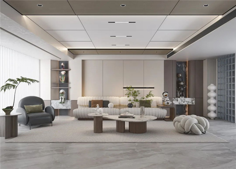 當(dāng)新中式的韻味,遇見現(xiàn)代的簡約一個家,兩種美學(xué)交融海創(chuàng)頂墻門柜全屋定制以一站式整體解決方案于雙層別墅中,演繹從容有度的品質(zhì)生活一層 · 東方禮序與靜雅棲居門廳:半透玻璃隔斷,入戶即見景,茶客廳若隱若現(xiàn),儀式感十足。客茶廳:奢石背景墻微錯層設(shè)計,搭配整墻定制收納柜。獨特島臺茶桌立于沙發(fā)之后,待客、品茗,功能隨心切換。老人房:遠(yuǎn)山意境畫作與對稱格柵相融,靜謐祥和,蘊含傳統(tǒng)底蘊。主臥:大面積留白,深棕點綴,9A級健康木墻板構(gòu)建靜音舒眠系統(tǒng)?;顒邮遥貉永m(xù)同色系設(shè)計,化作一方休閑棋牌天地,家庭歡聚于此。二層 · 現(xiàn)代筆觸與舒緩格調(diào)雙主臥:一抹奶油底色,溫柔彌漫。一室以弧形背景墻嵌入線性光,氛圍感拉滿;另一室巧妙實現(xiàn)墻柜一體,簡約而實用??蛷d:極簡清新風(fēng),弧形天花勾勒柔美線條,沙發(fā)背景墻通過多樣拼接,營造豐富視覺層次。辦公室:一門到頂?shù)陌腴_放書柜,收納與展示兼?zhèn)?。獨立沙發(fā)區(qū)滿足會客需求,實現(xiàn)高效辦公與輕松社交的平衡。海創(chuàng)全案優(yōu)勢 · 一站式美好落地從頂、墻、門到全屋柜類統(tǒng)一設(shè)計:風(fēng)格貫穿,色彩協(xié)調(diào),確保整體美感。專業(yè)定制:精準(zhǔn)利用每寸空間,功能與美觀并存。省心交付:全程一站式服務(wù),無縫銜接,告別繁瑣協(xié)調(diào)。more +01月