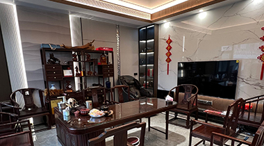 150㎡整裝以宋式風(fēng)雅為魂,融合現(xiàn)代人居理念,打造至簡至美的高端生活場域。從頂、墻到門、柜一體貫通,材質(zhì)、光影與形態(tài)和諧共生,讓每一次歸家,皆是沉浸式的人文體驗??蛷d|懸浮曲面,光影寫意電視背景墻采用9A木健康墻板打造懸浮曲面,柔韌流暢;沙發(fā)背景嵌入3D打印宋式窗格畫,虛實交織,勾勒出簡約而深邃的東方意境。餐廚|圓融有序,隱逸之美餐廳以中式圓桌呼應(yīng)半開放餐邊柜,電器嵌入、一門到頂,秩序中見豐盈。廚房延續(xù)深白配色,靜謐純粹,煙火亦成詩。臥室套間|功能與形制交融主臥以U型轉(zhuǎn)角柜構(gòu)建衣帽、梳妝與衛(wèi)浴一體的大套房,造型別致,儀式感十足。次臥拆除飄窗改為榻榻米,輔以蒲團(tuán)茶席,休閑與休憩自如切換。書房與兒童房|東方意境與巧思并存書房借水墨江山畫與深胡桃木書柜營造靜心讀寫之境。兒童房巧妙延伸定制柜作床頭柜,釋放活動空間,兼顧成長與雅趣。全屋以宋為韻,以整裝為筆,不僅統(tǒng)一了視覺美學(xué),更在細(xì)節(jié)中植入從容的生活節(jié)奏——這是一處可居、可賞、可安放身心的現(xiàn)代宋式雅居。more +品牌介紹