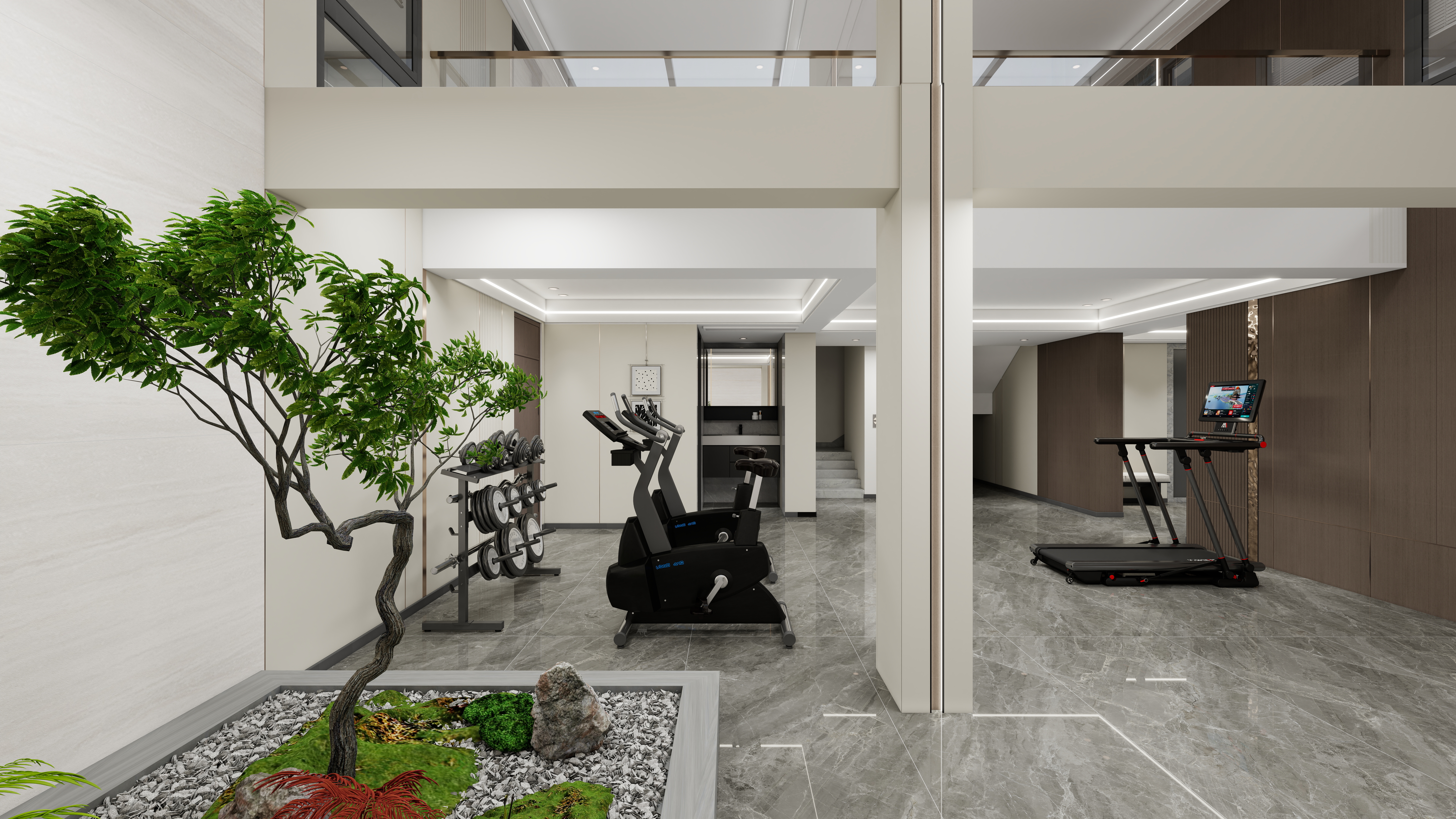 當混搭美學遇上雙層別墅,生活便不再是單一的場景重復。海創(chuàng)整裝以專業(yè)防潮工藝與整體統(tǒng)一設(shè)計,在此勾勒出明亮通透、功能交織的理想居所。地下與地上,風格交融,每一處皆成風景。地下一層 · 靜謐與活力共生入戶即景,藍金沙3D打印背景墻聚焦視線,與雙邊定制柜共同圍合出寬敞大氣的玄關(guān)。大堂采用挑空設(shè)計,白棕配色勾勒意式優(yōu)雅,天井下設(shè)景觀與長椅,引光入室,閑坐亦成詩。向內(nèi)延伸,是器械林立的健身區(qū),以及一處星空頂影音室——9A木健康墻板靜音降噪,在此沉浸視聽,奢享私密時光。一層 · 交融中西的休閑場域客廳延續(xù)輕奢意式格調(diào),藍金沙與深胡桃木背景墻,與玄關(guān)遙相呼應(yīng)。茶室則大膽運用中國紅與白色碰撞,定制柜營造多層光影,除大茶桌外,更設(shè)休閑一角,便于促膝深談。新中式茶韻、意式慵懶、麻將社交、廚房煙火……多元場景自由切換,情感與溫度在此悄然流動。洞見空間哲學,演繹生活故事海創(chuàng)整裝,以統(tǒng)一設(shè)計語言貫通雙層空間,防潮工藝守護地下室明亮干燥。在這里,風格無界,功能無限,一切只為回歸居住的本真愜意。more+