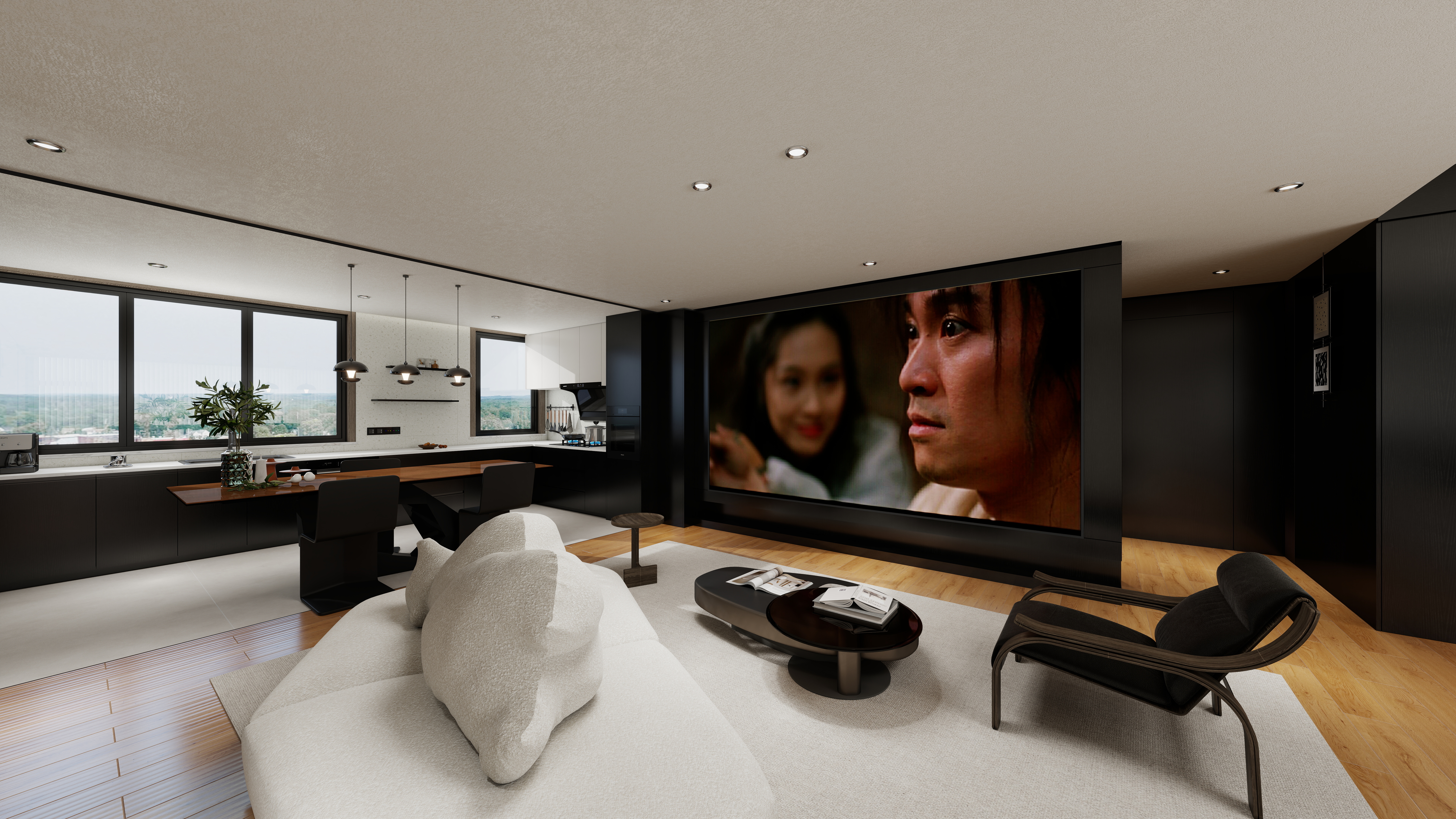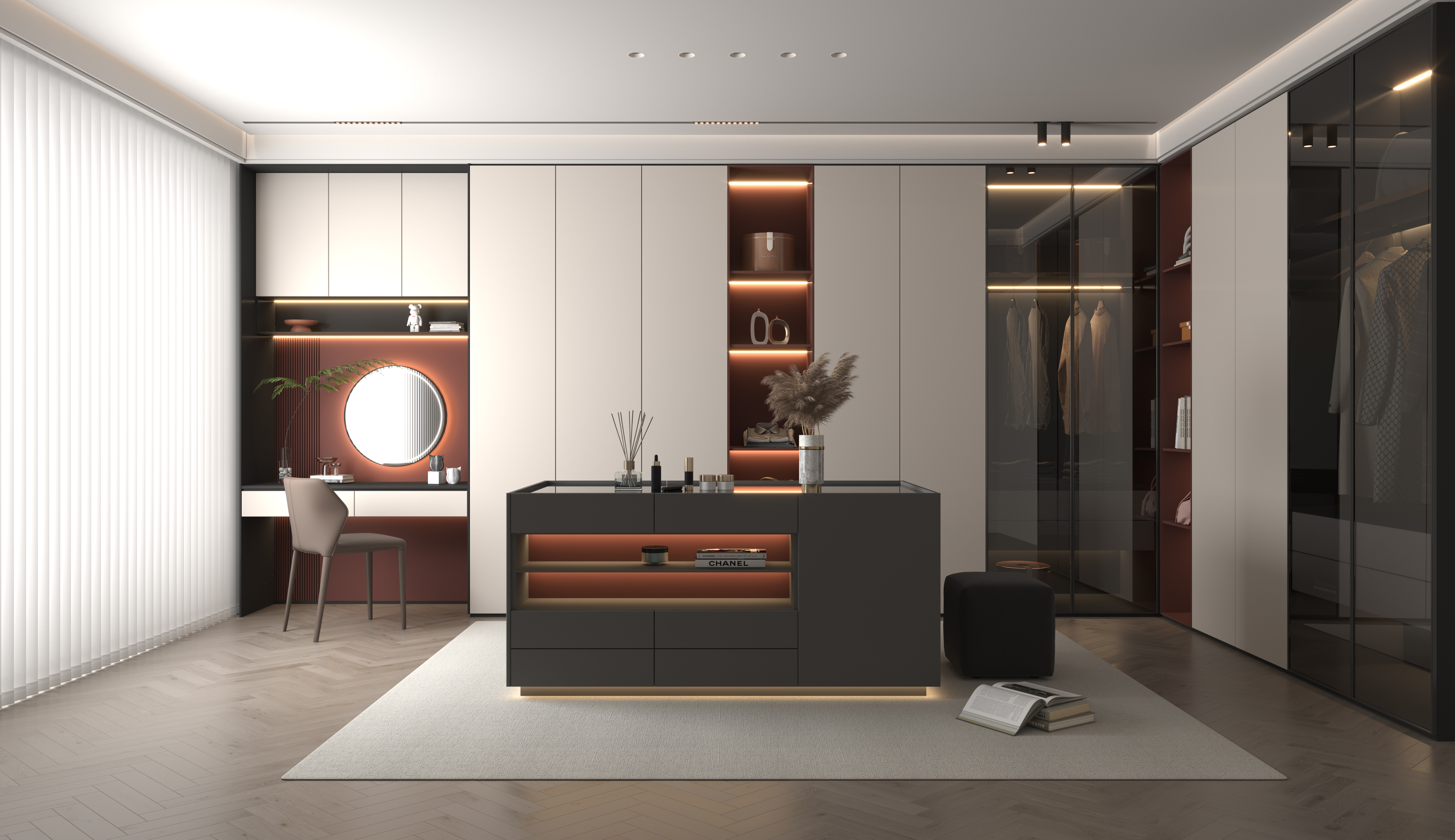 步入這個245㎡的意式大平層,半透黑胡桃與白、灰色調(diào)共同勾勒出寧靜雅致的氛圍??臻g核心,是整體優(yōu)雅的頂墻門柜一體化配色氛圍,在這個開放式大空間內(nèi)渾然一體,凸顯大宅精致氣度。設(shè)計亮點01 流動的客廳圓弧轉(zhuǎn)角電視背景墻與滿墻電視柜的無縫銜接,消除直角帶來的生硬感,讓視線與動線自然流轉(zhuǎn)。書房融入客廳,開放式布局打破空間壁壘限制。02 社交型餐廚開放式餐廚設(shè)計,島臺成為家庭互動中心。大理石與木紋的碰撞,精致與溫暖并存。03 差異化臥室每個臥室都有獨特的墻柜設(shè)計與床頭拼色背景,在統(tǒng)一風格中保留個性表達。04 隱形收納系統(tǒng)從書房半透柜到陽臺整體柜,收納被藝術(shù)化地隱藏,保持空間表皮的絕對純凈。05 極致色彩統(tǒng)一半透黑胡桃搭配白色、灰色調(diào),通過頂墻門柜同色配套,達到視覺效果的完美和諧。在這個快節(jié)奏的時代,家應(yīng)當是讓人慢下來的地方。這個245㎡的極簡意式大平層,用克制的設(shè)計語言,構(gòu)建出一個既能容納生活瑣碎,又能撫慰心靈的理想居所。more+