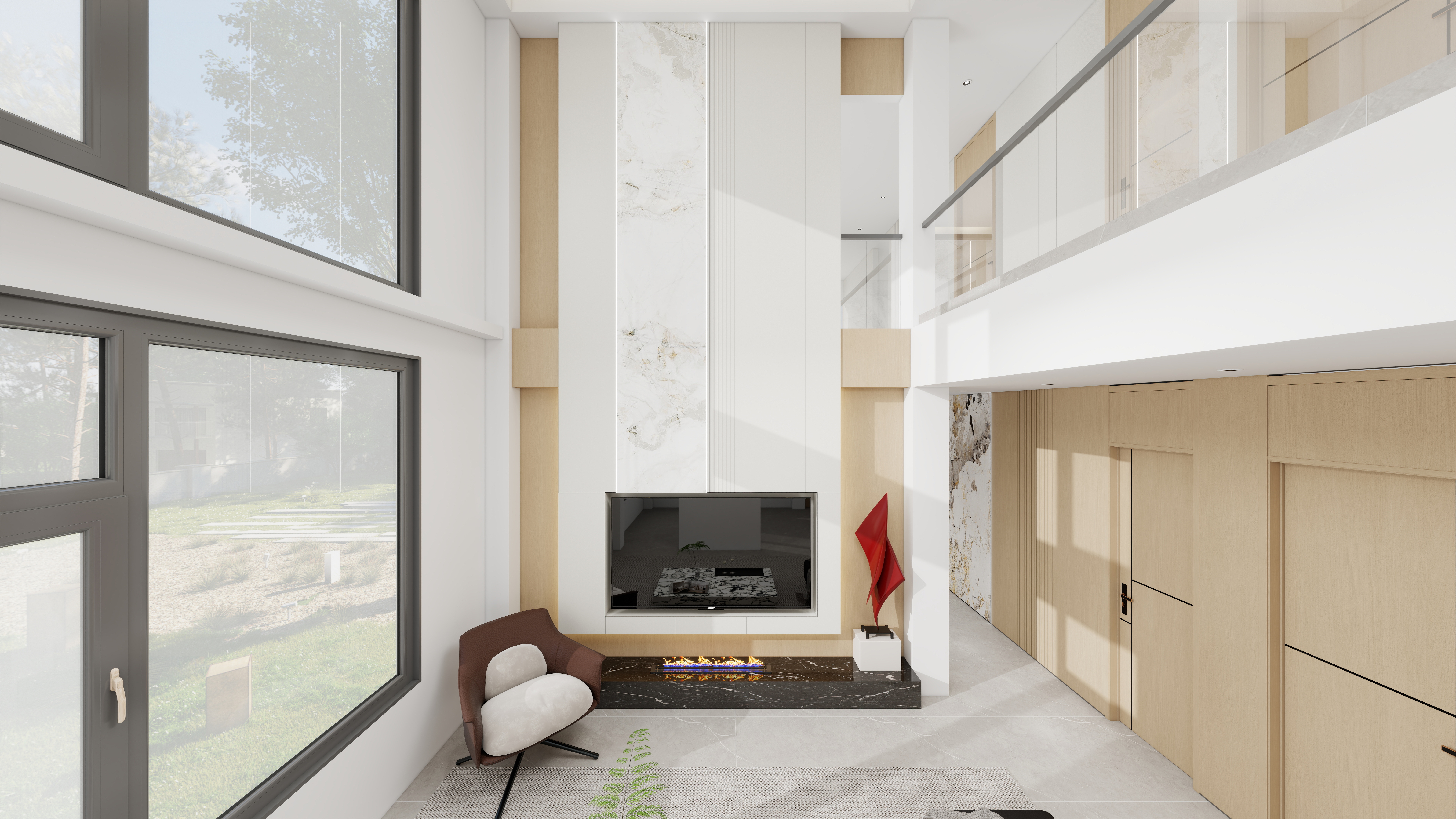 海創(chuàng)頂墻門柜,以系統(tǒng)化定制能力,將意式美學與功能哲學融入每寸空間,成就獨一無二的高端居住范本。挑空格局,光影交響上下雙層,挑空設(shè)計打開空間氣場。整體以經(jīng)典黑白為基調(diào),底層客餐廳通透一體,客廳背景墻貫通至二層,奢石紋理躍然眼前,與溫潤木飾面碰撞,交織出自然與奢華的共生韻律??蛷d:奢石與火焰的對話電視背景墻以流暢圓弧側(cè)邊結(jié)合懸浮設(shè)計,勾勒出輕盈之態(tài)。底部嵌入現(xiàn)代壁爐,火焰躍動,為極簡的Ins風空間注入溫暖靈魂。抬頭即見二層觀景臺,日光傾瀉,明亮感貫穿上下。餐廳:鏡面魔法通頂?shù)纳罨叶ㄖ乒癯练€(wěn)延展,頂部巧妙運用鏡面設(shè)計,搭配線性光影燈帶,視覺空間瞬間拉升,營造出深邃而高級的用餐儀式感。書房:懸浮之境步入二層,書房以白、金、黑勾勒奢華氛圍。半開放式書柜內(nèi)置光影層板燈,珍藏的手辦宛如藝術(shù)展品。透明玻璃書桌與護欄相呼應(yīng),工作間隙俯瞰樓下全景,心境隨之轉(zhuǎn)換開闊。精工交付:一站式系統(tǒng)化兌現(xiàn)從甄選環(huán)?;呐c意大利質(zhì)感飾面,到一體化設(shè)計、毫米級精準定制與專業(yè)團隊高效安裝,海創(chuàng)提供真正的一站式系統(tǒng)服務(wù)。每一個環(huán)節(jié)嚴密銜接,確保全屋色彩、質(zhì)感與細節(jié)的高度統(tǒng)一,所見即所得,將效果圖中的高級感完整落地于家。more+