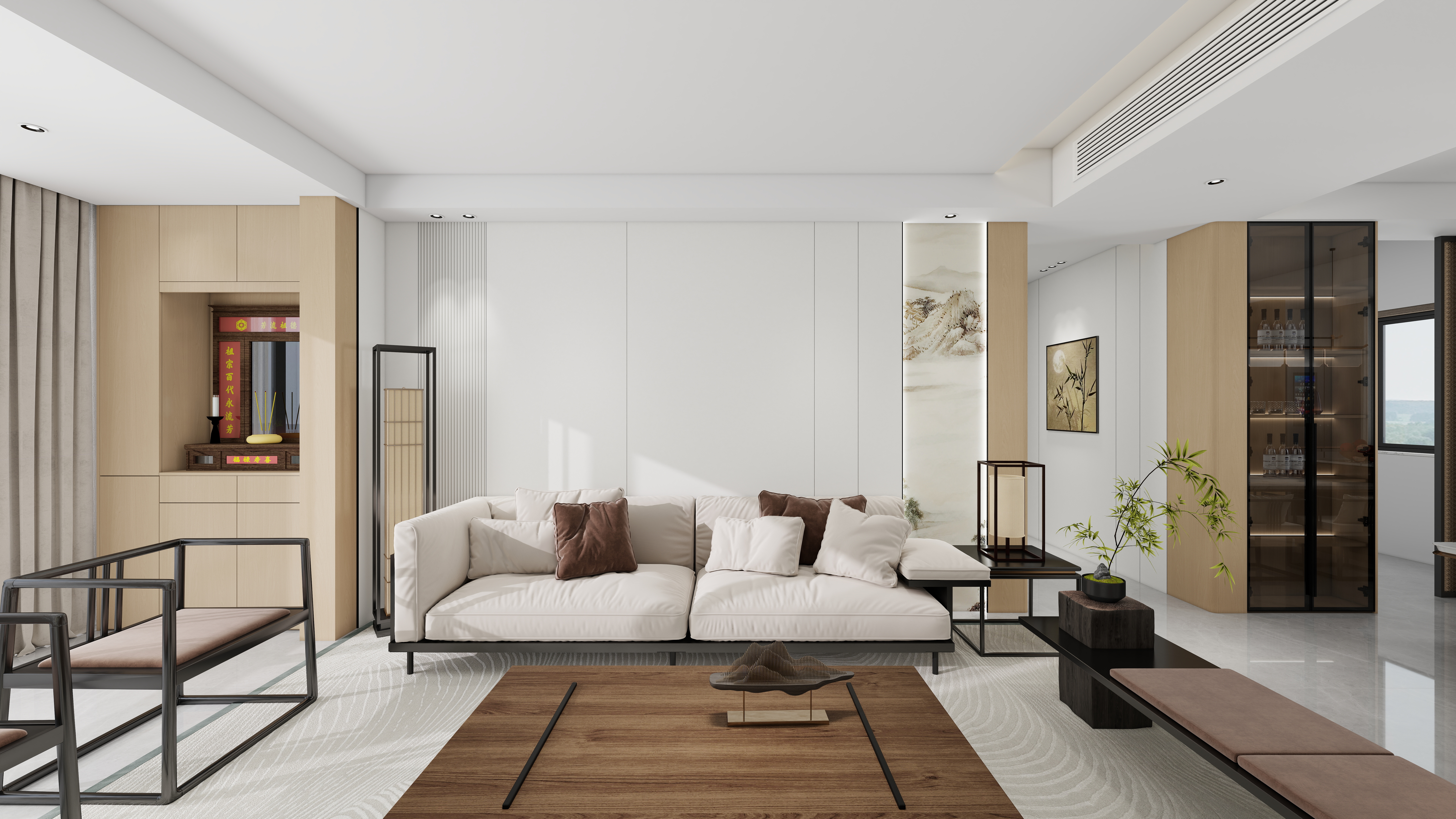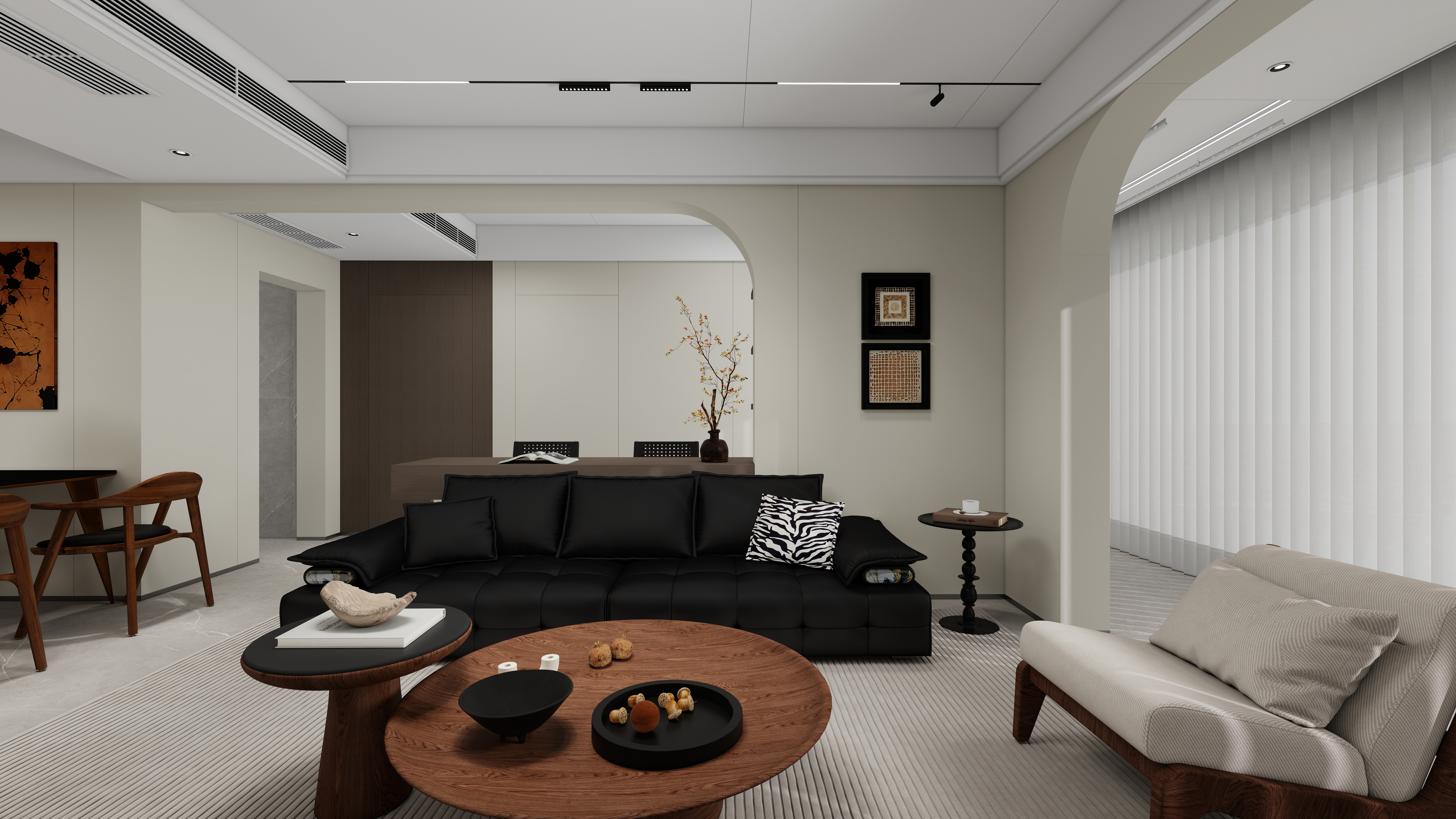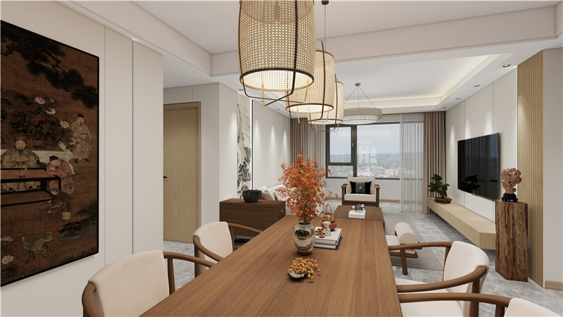 深淺胡桃木與新中留白藝術(shù) 演繹都市平層生活范本…