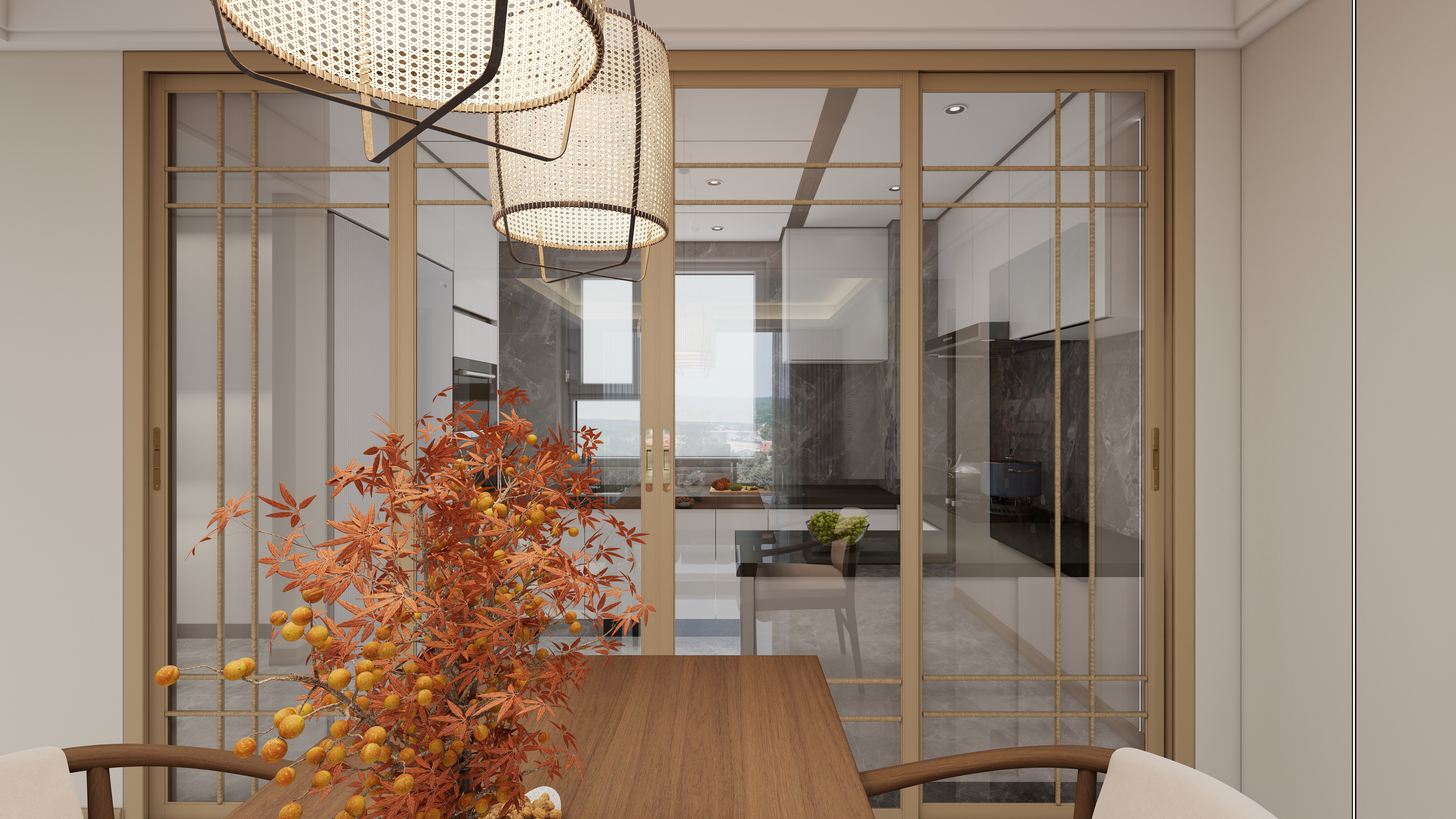 寒露至,秋意濃,楓葉漸紅,家亦需一方溫暖相迎。100㎡新中式兩廳三居,以胡桃木色與白為主調(diào),勾勒秋日里的沉穩(wěn)與潔凈,演繹恰到好處的居住美學(xué)。玄關(guān):秋意迎賓,歸家即靜胡桃木色玄關(guān)柜搭配白色墻面,宛如秋葉落于素宣。入門(mén)一刻,喧囂隔絕,只留靜謐與秩序??筒蛷N一體:開(kāi)闊通透,共享秋光開(kāi)放式布局打通空間界限,胡桃木櫥柜、餐桌與白色巖板島臺(tái)相映。寒露時(shí)節(jié),家人圍坐,美食暖胃,笑語(yǔ)盈堂。陽(yáng)臺(tái):收納秋色,閑適一方定制陽(yáng)臺(tái)柜巧妙收納,留白空間擺放藤椅茶幾。午后倚窗,沐暖陽(yáng)、品熱茶,盡享秋日慵懶。主臥:木白相融,安眠秋夜深胡桃木與白色鉤花造型打造別樣中式背景墻,寧?kù)o氛圍滿溢。寒露夜涼,溫暖包裹,安心入夢(mèng)。次臥 客臥:簡(jiǎn)約有度,暖心以待延續(xù)木+白基調(diào),布局簡(jiǎn)約實(shí)用。無(wú)論是兒童房還是親友暫住,皆傳遞細(xì)致關(guān)懷。秋深家暖,寒露時(shí)節(jié)與海創(chuàng)頂墻門(mén)柜一同雕琢理想居所,讓生活如秋光般溫潤(rùn)而從容。more+