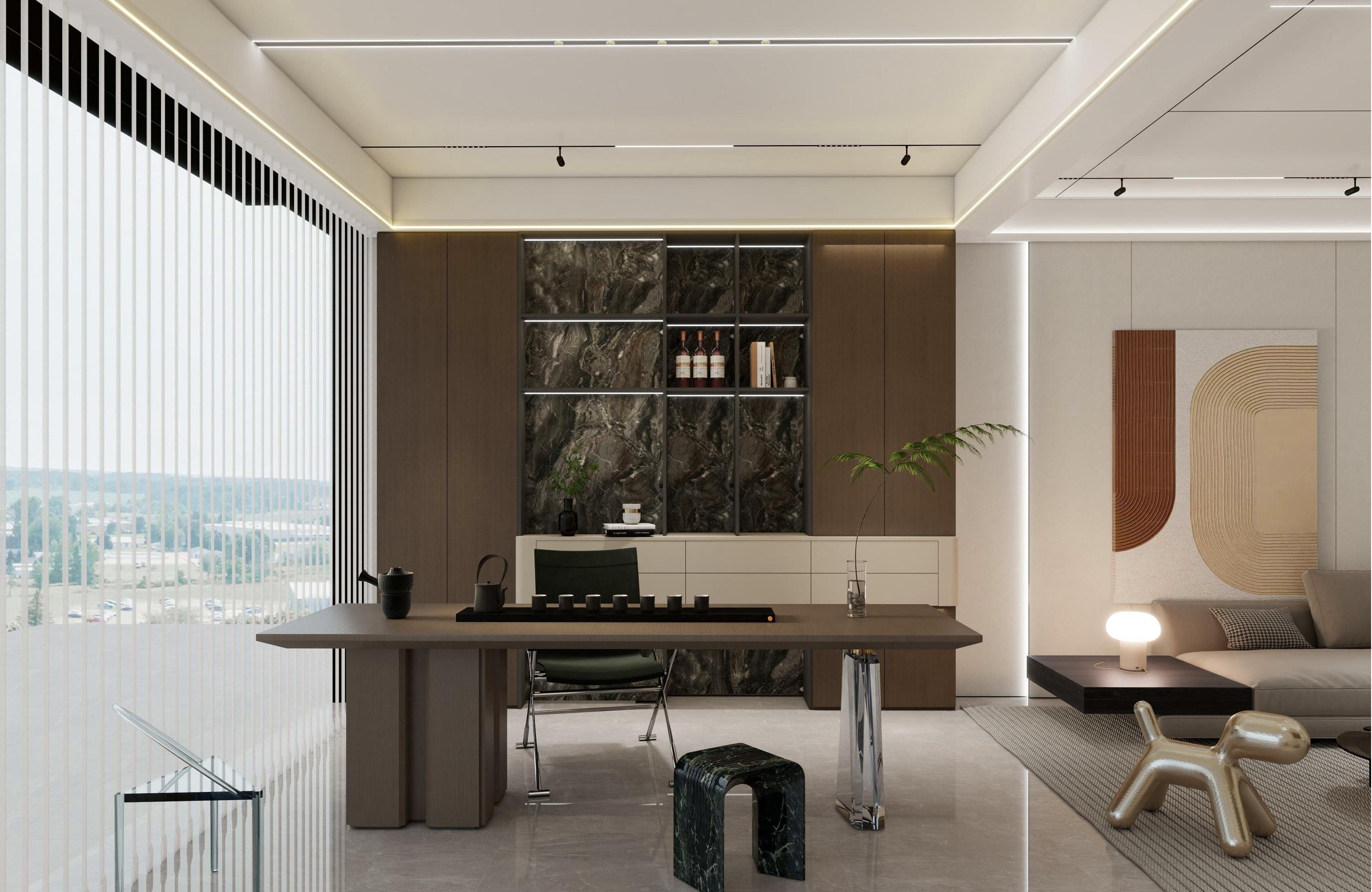 一宅定制,所見(jiàn)即所得從結(jié)構(gòu)到細(xì)節(jié),從材質(zhì)到光影,海創(chuàng)以全屋定制+一站式裝修,實(shí)現(xiàn)意式極簡(jiǎn)的理想模樣。不拆解風(fēng)格,不拼湊單品,一站式負(fù)責(zé)到底,真正實(shí)現(xiàn)“家”的整體感與高級(jí)感。▌ 挑空大堂:通透之間,氣勢(shì)自成木紋與仿大理石紋對(duì)撞成沙發(fā)背景,貫通上下兩層。材質(zhì)延伸、線條統(tǒng)一,視覺(jué)開(kāi)闊而不失溫度,瞬間定調(diào)大宅氣度。▌ 茶室:半藏半露,收納有方單側(cè)定制柜,巧妙融合開(kāi)放展示與半透玻璃門(mén)。收納與美感平衡,在此品茶靜思,心也隨之沉靜。▌ 轉(zhuǎn)角樓梯:光影引路,銜接雙空間燈帶嵌入踏步與扶手,光線柔和指引向上。不僅是通道,更是連接一二層的生活紐帶,簡(jiǎn)約中見(jiàn)細(xì)節(jié)。▌ 餐廚一體:功能與美感共生廚房三面島臺(tái)+中島設(shè)計(jì),電器全部嵌入式處理,白灰主色調(diào)潔凈利落。餐廳頂部圓弧造型呼應(yīng)圓桌,從二層俯瞰大堂,空間對(duì)話,氣勢(shì)貫通。一站式落地,從容筑家從背景墻到頂面,從柜體到木門(mén),海創(chuàng)以全案定制能力,統(tǒng)一材質(zhì)、統(tǒng)一工藝、統(tǒng)一服務(wù)。不必東奔西跑,不必?fù)?dān)心搭配失調(diào)——極簡(jiǎn)不只是風(fēng)格,更是從容不迫的筑家體驗(yàn)。more +01月