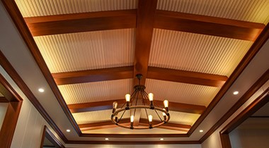 庭院深深深幾許?楊柳堆煙,簾幕無重數(shù)?!獨W陽修《蝶戀花》古人樂于營造庭院,筑虛室數(shù)楹,以木槿作籬,結(jié)秋茅為亭。竹蔭里種樹栽花果,清池邊擇荇澆蔬菜,搜奇峰為腹稿,壘土石為假山,引清流為園池。庭院,奢侈如詩。深深庭院,作為東方生活審美的一種方式,每每滲透于古人的詩書畫意之中。庭院對于中國人而言,除了作為日常起居的生活空間,更是一種休養(yǎng)生息的精神家園?,F(xiàn)代社會,隨著高樓大廈的聳立,庭院越來越成為古跡乃至記憶中的東西,但中國人的“庭院”情結(jié),卻始終深藏心底。即使已不再擁有庭院,但這份寄情庭院的閑適心情我們依然可以自我營造!懷著對中式庭院美學(xué)的憧憬,我尋訪過很多裝修方式,卻始終只是零星片角,未曾見到完整的新中風(fēng)格,直到遇到它——蘭亭雅韻。完整而充滿靈韻的新中式整體設(shè)計,徜徉其中,在客、臥、餐、廚、衛(wèi)間穿梭,仿佛流連于古詩庭院之中,迎面吹來“滿架薔薇一院香”的清韻氣息。中式建筑的一大特色便是“鋁梁”,將橫跨空間的鋁梁與簡約淡雅的窗格結(jié)合,綻放在每個空間的穹頂之上,便是蘭亭雅韻中式整裝集成吊頂?shù)脑O(shè)計精髓所在。一襲中式系列吊頂,帶你回歸庭院深深、靜雨幽幽……蘭亭雅韻之客廳空間鋁梁環(huán)繞一周,立體突顯、空間躍然;鋁梁分立左右,動靜皆宜、勻美相稱。窗格花燈,居其中央,蜿蜒又筆直,大有向四周蔓延之勢。搭配方案蘭亭雅韻之臥室空間仰天、冥思、回憶,乃臥室空間的一大樂趣!采用“回”字造型,打造回想連篇的獨特意境,當(dāng)抬頭仰望,思緒隨階梯式的吊頂逐漸鋪開,在光與影的相交輝映下,一步步打開通往美好世界的巨大穹頂。搭配方案蘭亭雅韻之餐廳空間眾里尋他千百度,那人卻在燈火闌珊處。線與光的感應(yīng)交織,讓空間多了些虛實相間的東方韻味和端莊大氣。典雅的胡桃木與溫潤的玉石紋讓,仿佛要人嗅出古老的書香氣息。搭配方案蘭亭雅韻之廚房空間平直的大面積走線效果,編織起裊裊炊煙。窗格鎖扣式拼接造型,將中式對稱的講究發(fā)揮到極致,內(nèi)斂、整齊而不失儒雅。蘭亭雅韻之衛(wèi)浴空間水光反射,相映成趣,景致叢生,窗明幾凈,“水、光、景、凈”是這一空間的禪意世界。鋁梁的小面積運用,相比廚房的豪放,更多了份優(yōu)雅的精致!海創(chuàng),中國頂墻整體定制先行者!more+NEW