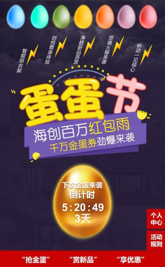 蛋蛋節(jié)駕到!百萬(wàn)紅包 千萬(wàn)金蛋 勁爆來襲?。?!來源:海創(chuàng)集成吊頂十大品牌 發(fā)布時(shí)間:2016/12/9 3:14:26