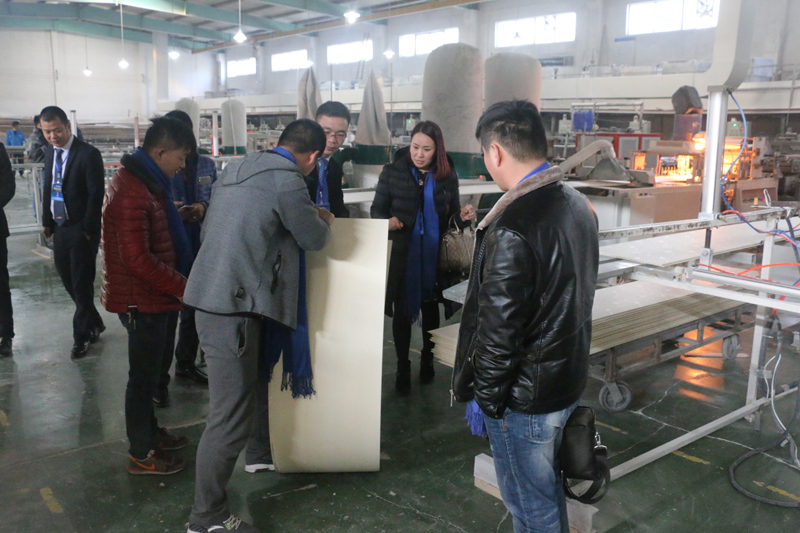 上午九點(diǎn)時分,客戶坐大巴準(zhǔn)時到達(dá)海創(chuàng)總部工廠,客戶分別對樣板間與工廠進(jìn)行實(shí)地考察。海創(chuàng)豐富而多樣的吊頂與墻面產(chǎn)品讓人驚嘆,流水線生產(chǎn)的精準(zhǔn)與快速性也讓首次來海創(chuàng)的客戶體驗(yàn)到品質(zhì)獨(dú)到??疾爝^產(chǎn)品的生產(chǎn)與成品后,客戶便來到海創(chuàng)自行搭建完成的體驗(yàn)館感受頂墻一體魅力。