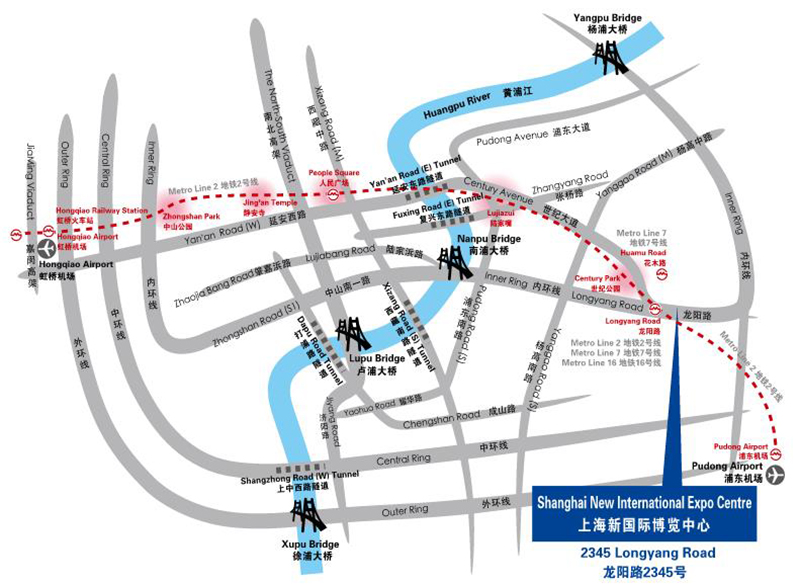 從地鐵一號(hào)線(上海南站站)上車,坐至(人民廣場(chǎng)站)下車,換乘點(diǎn)轉(zhuǎn)地鐵二號(hào)線(人民廣場(chǎng)站)上車,坐至(龍陽路站)下車,步行新國(guó)際博覽中心國(guó)際館從2號(hào)入口廳進(jìn)入W5-B03海創(chuàng)展廳。