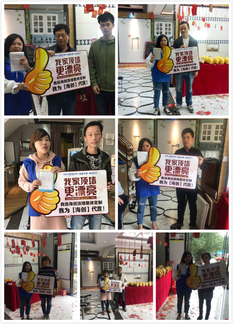 海創(chuàng)“我家頂墻更漂亮”【品鑒盛惠】中國行活動(dòng)持續(xù)進(jìn)行到第三天,各海創(chuàng)門店店內(nèi)人員熱情高漲,簽單火爆。