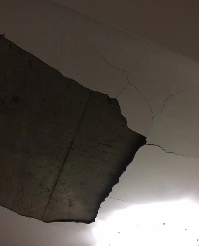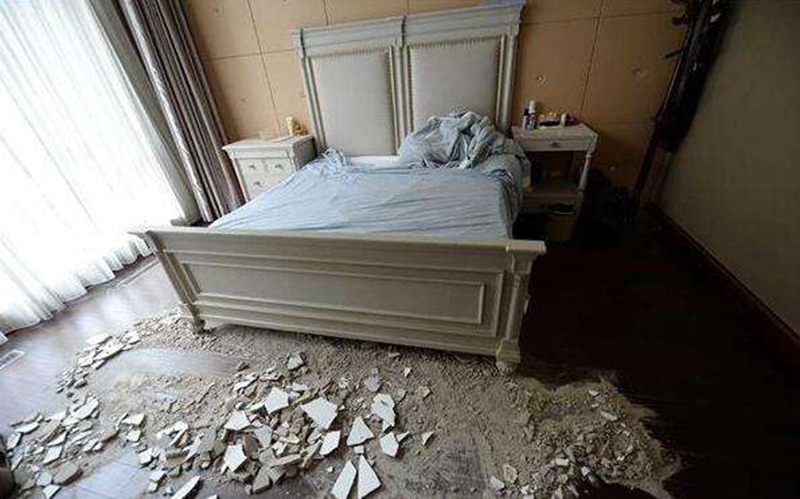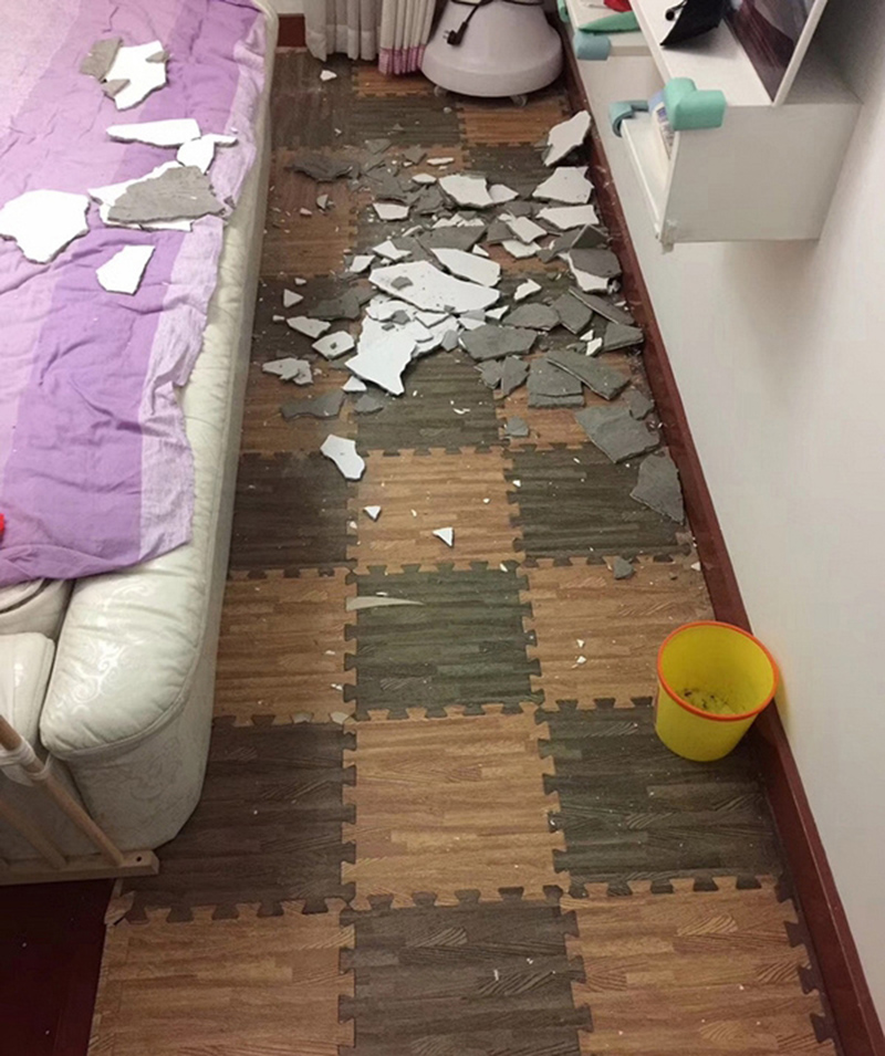 據網友爆料:這個月14號凌晨兩點半,浙江嘉興新豐麗X家園二期一業(yè)主家主臥天花板突然掉落,砸在地板和床尾上。業(yè)主驚醒后抱著一歲多的女兒逃去了爸媽房間,慶幸沒有砸在床頭,否則后果不堪設想。