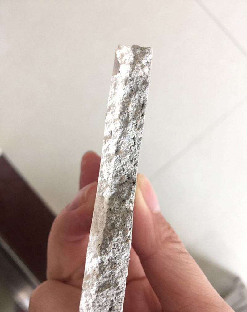 事發(fā)后,開發(fā)商派人查看,不承認責任,說是業(yè)主裝修工作沒做好;裝修師傅也看過,說白色那層是他粉上去的,黑色那層水泥是開發(fā)商粉的,水泥脫落是開發(fā)商沒弄好。