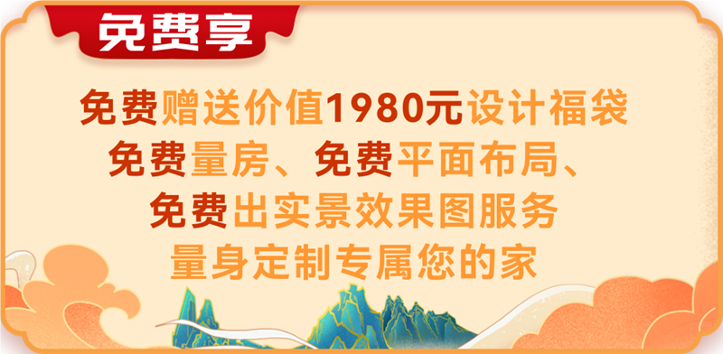 2、免費(fèi)享:免費(fèi)贈送價值1980元設(shè)計(jì)福袋,免費(fèi)量房、免費(fèi)平面布局、免費(fèi)出實(shí)景效果圖服務(wù),量身定制專屬您的家