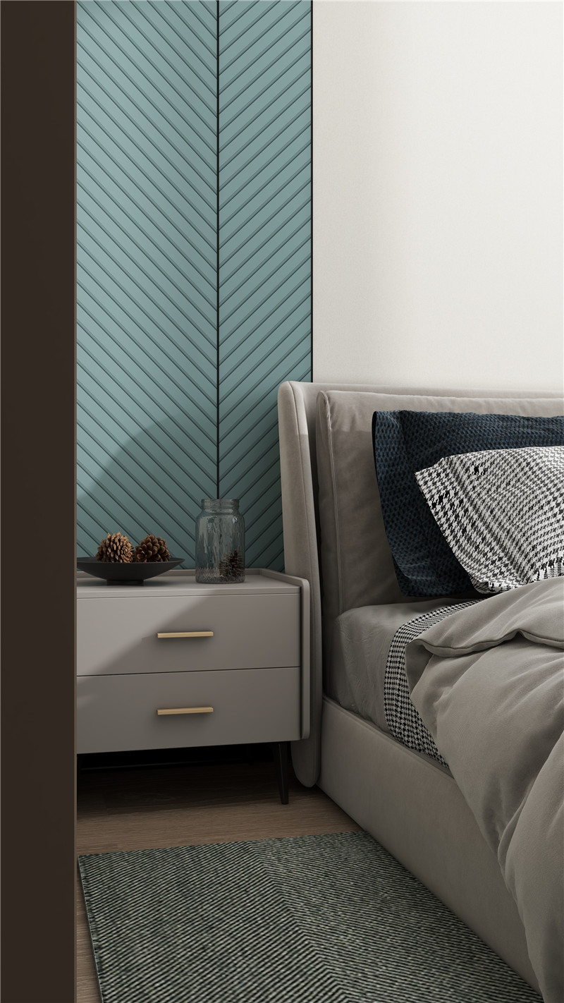 臥室空間比較寬敞,一定要設(shè)計(jì)大面積的定制柜,一門到頂,既與墻板統(tǒng)一,又能增加收納量。如果還有飄窗,則用竹木美墻板改造成帶有定制柜的休閑場(chǎng)所,也是一個(gè)不錯(cuò)的選擇。