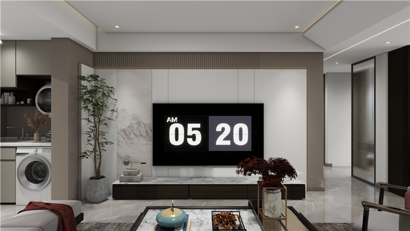 客廳空間即使安裝了墻面和定制柜,依然很寬敞,簡(jiǎn)約的微錯(cuò)層設(shè)計(jì)沙發(fā)背景墻落落大方,接待客人更顯大氣體面,也適合中秋國慶團(tuán)聚的日子。當(dāng)一家人圍坐在茶幾邊,吃月餅、嗑瓜子、品茶、暢聊,該是多么快樂的光景。
