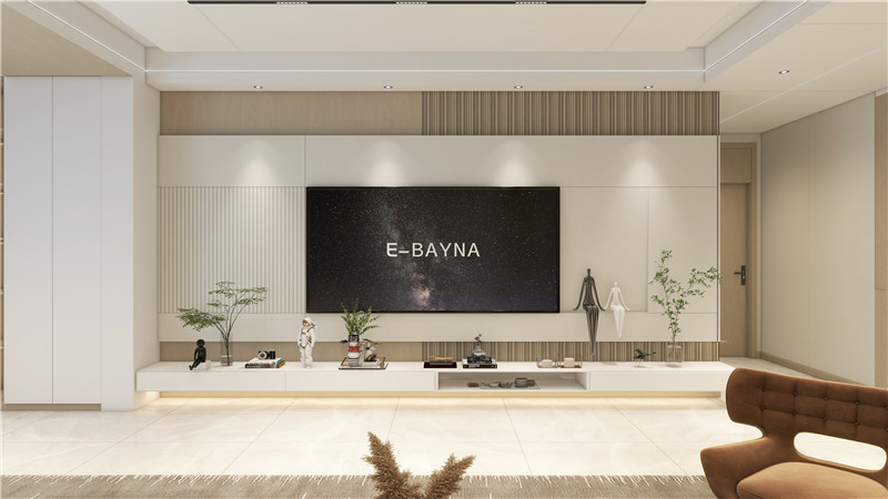不同造型的多樣組合拼接和色調(diào)碰撞,讓微立體感躍然于墻面,同時(shí),懸空電視柜和定制柜的無(wú)縫對(duì)接將空間的完整度拉滿,最大程度保留客戶心目中的大空間感。